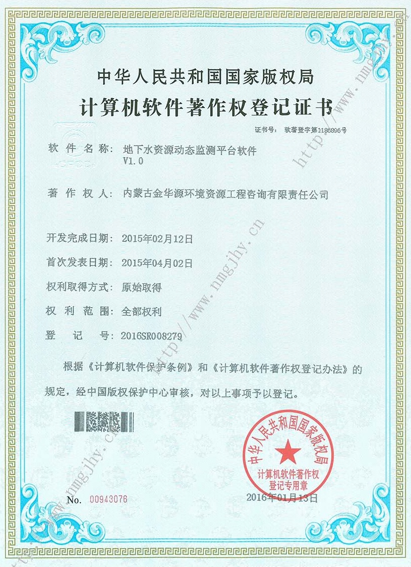 祝賀公司“地下水資源動態(tài)監(jiān)測平臺”等七部軟件獲得國家版權(quán)局頒發(fā)的《計算機軟件著作權(quán)登記證書》