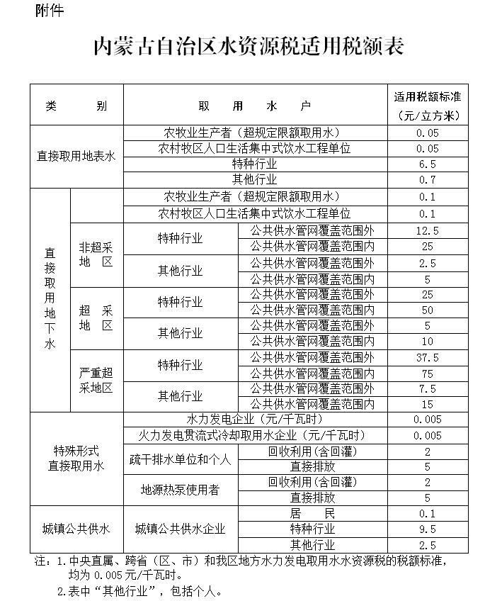 附件:內(nèi)蒙古自治區(qū)水資源稅適用稅額表