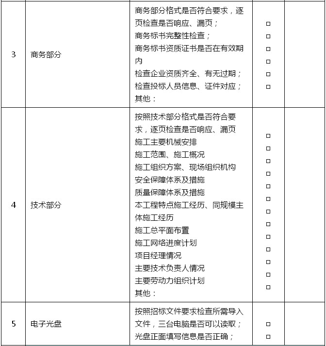 6、施工方案與招標文件要求、投標書有關承諾是否一致。材料供應是否與甲方要求一致,是否統(tǒng)一代儲代運,是否甲方供應或招標采購。臨時通信方案是否按招標文件要求辦理。(有要求架空線的,不能按無線報價)。施工隊伍數(shù)量是否按照招標文件規(guī)定配置。